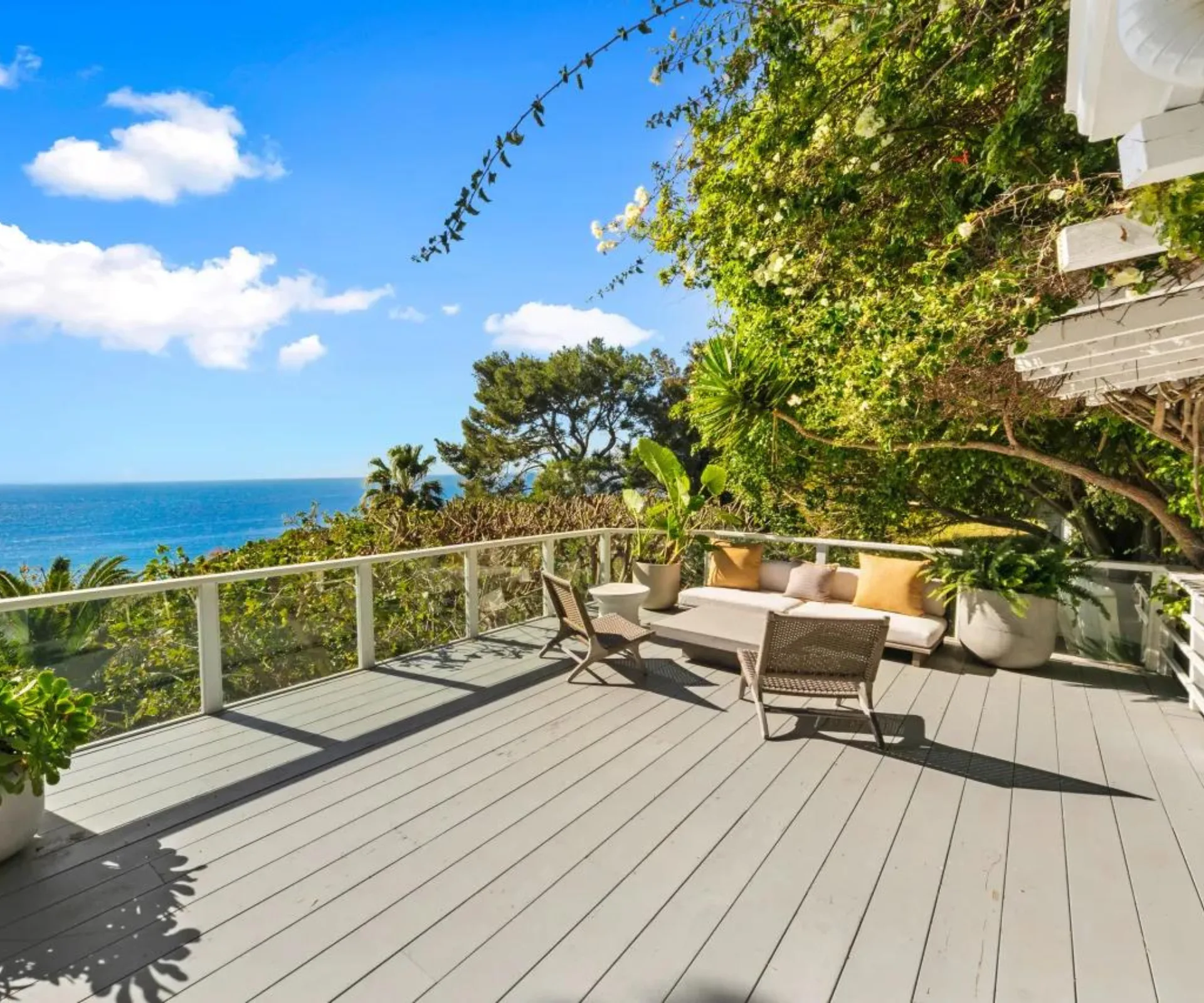 Renovated and expanded by Miranda, the property offers spacious outdoor decking with views of the Pacific Ocean.