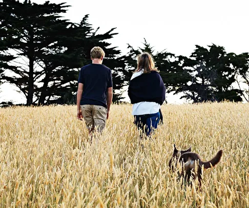 Cricket, now seven, and Eddie, a three-year-old red and tan kelpie, grew up on a farm the family owned on Victoria’s Mornington Peninsula.