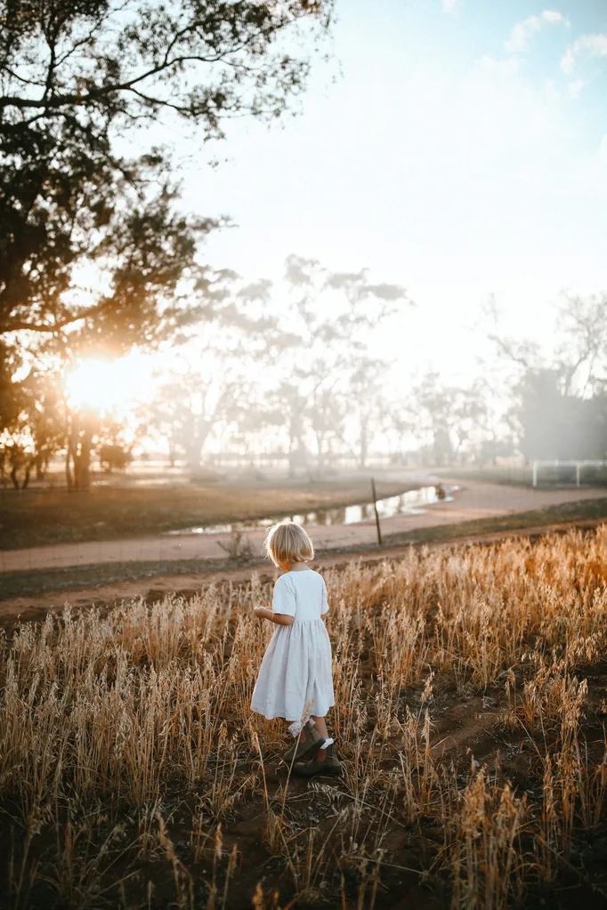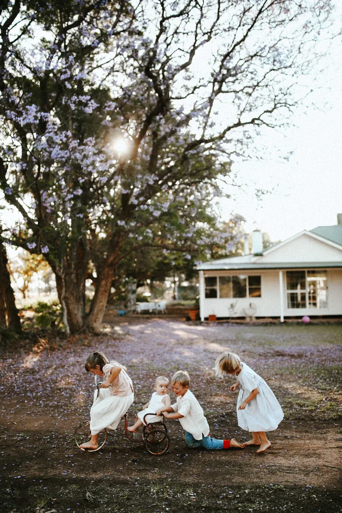Clancy shares her emotive, candid photographs of the children’s bush life on social media, which has gained an appreciative following. “I try to stay true to myself and other mums by being authentic — the kids aren’t clean, they’re barefoot in undies in front of the clothesline, or ripping around with our old shed pram, dust flying,” she says of Dolly, six, Daisy, five, Trader, four, and one-year-old Hardy.