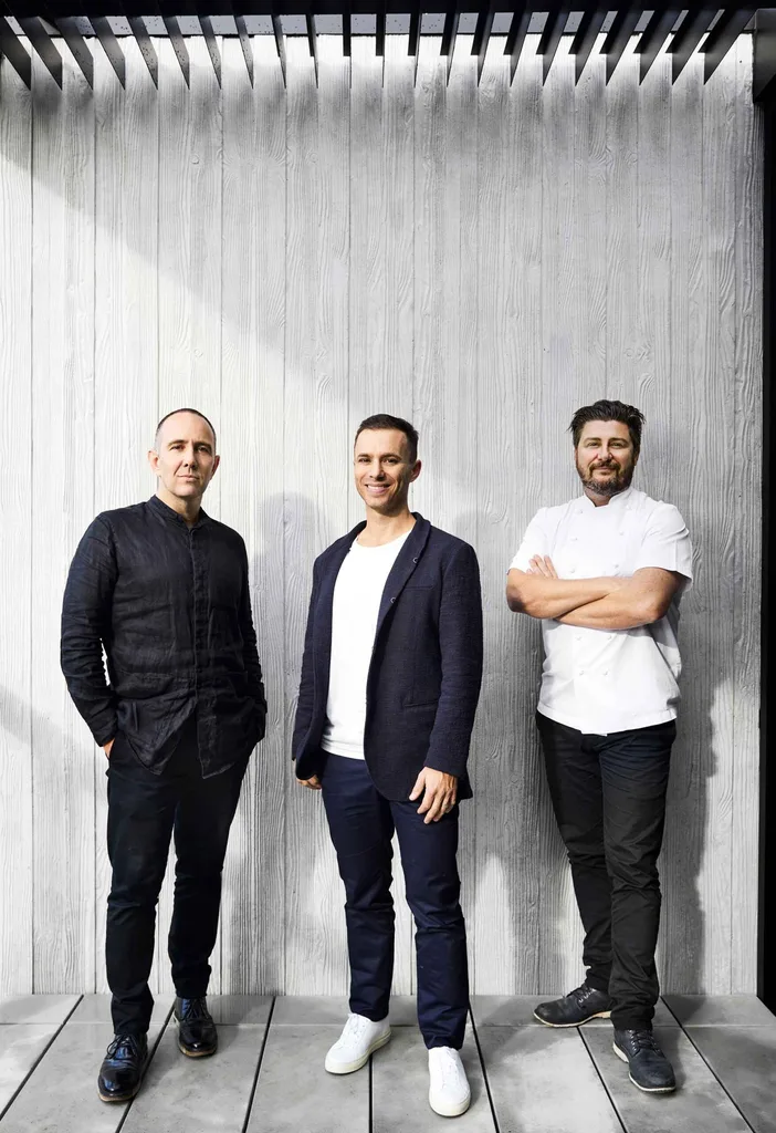 Architect Chris McCue, owner Darren Rubenstein and Matilda 159 Domain chef Scott Pickett.