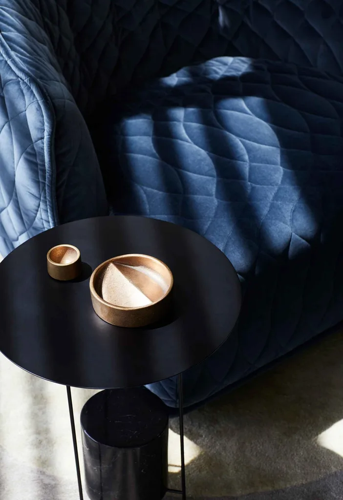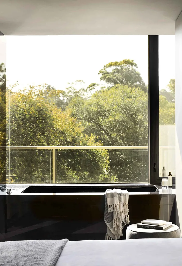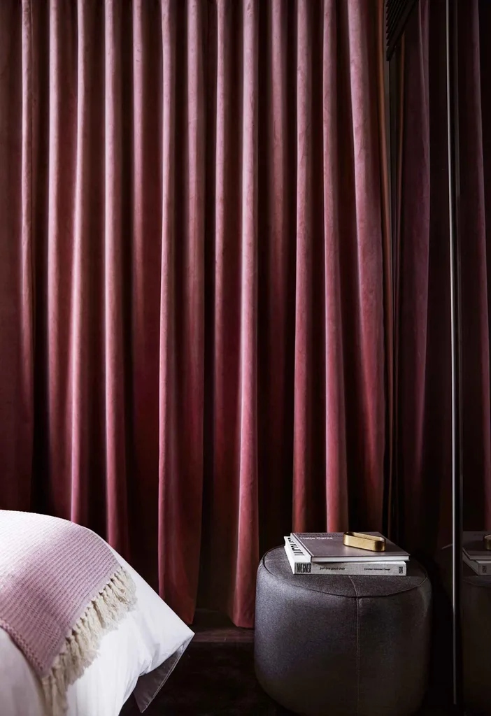 (Photography: Emily Weaving)There are some outstanding elements at United Places that make it memorable, most notably the motorised velvet curtains that enclose the bed, the standard washer/dryers hidden behind extended kitchen doors, views over the Royal Botanic Gardens, and handcrafted ceramics by local artisan Shari Lowndes.