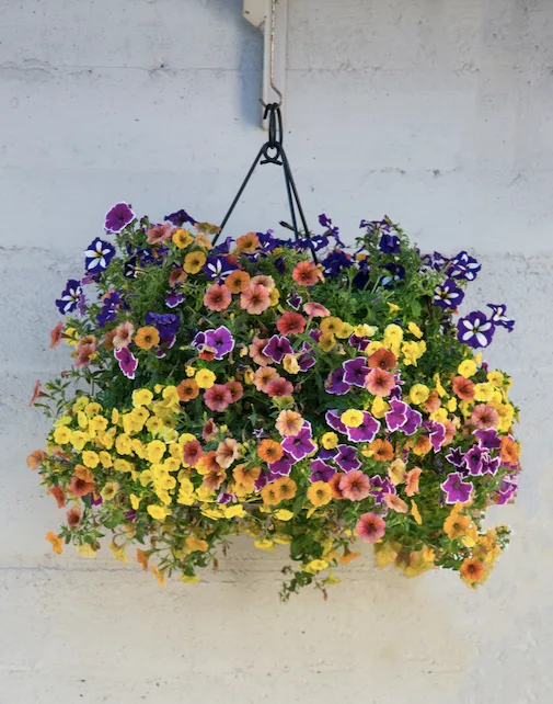 Keep up the fertiliser as plants can quickly draw nutrients from the small area in their basket. Use slow-release granules every three to six months, or liquid fertiliser more regularly.