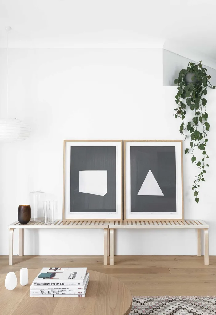 Living area The Artek ‘153A Bench’ from Anibou is the perfect spot to prop up a pair of James Turrell prints.