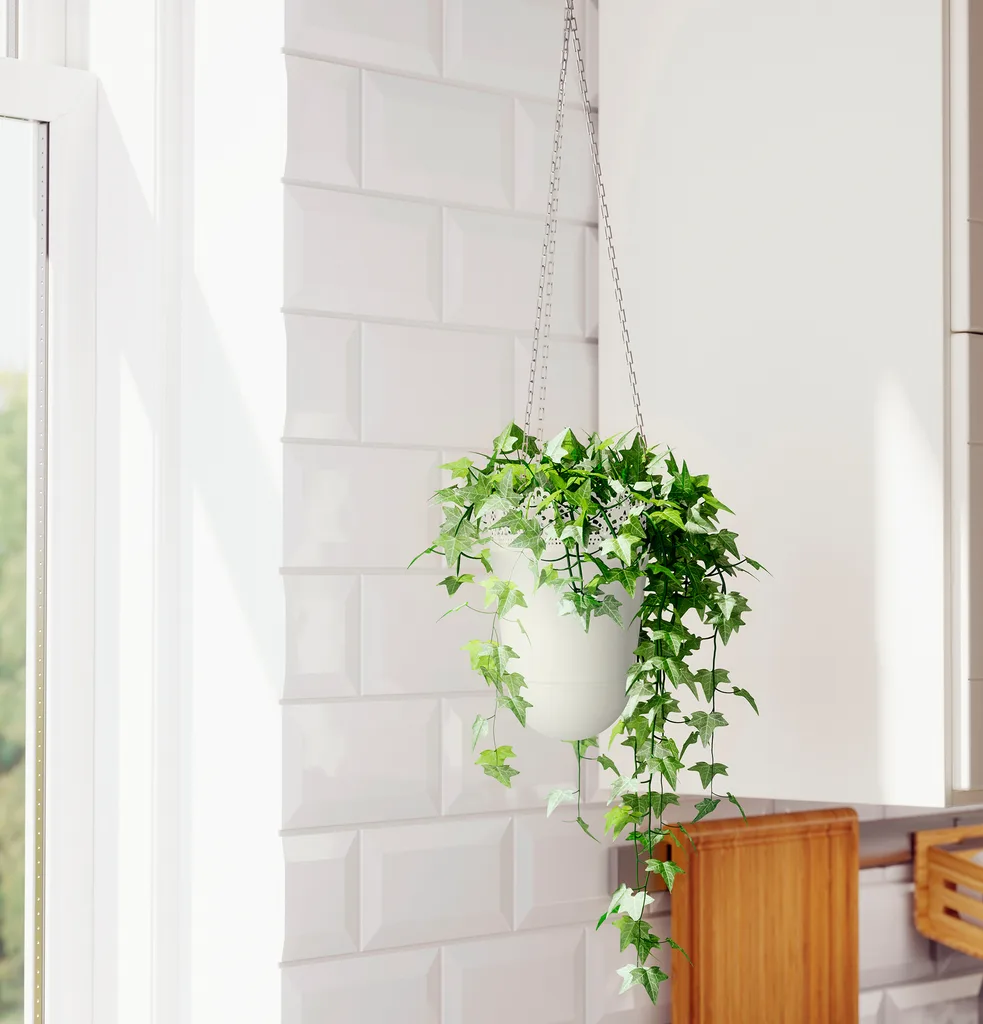 Hanging planters can be made from materials like cement with fibreglass, earthenware, plastic and wire, or hangers that fit snugly around pots. Use a cluster of hanging plants to delineate an area, for example above a table, or in a row to divide a room.