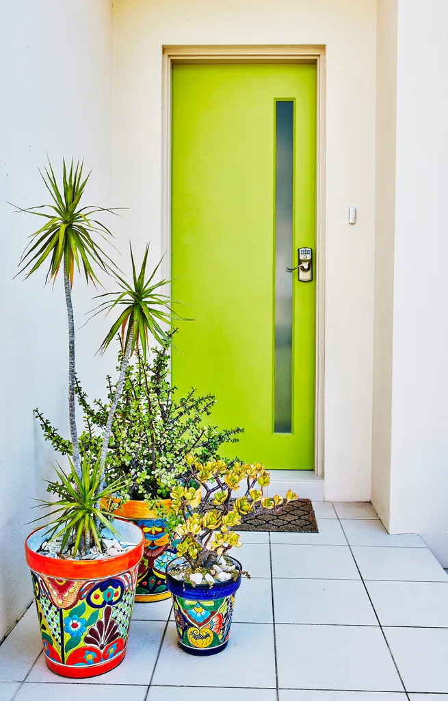 A grouping of pots, teamed with a bold front door, makes a striking entrance. Photo: bauersyndication.com.au