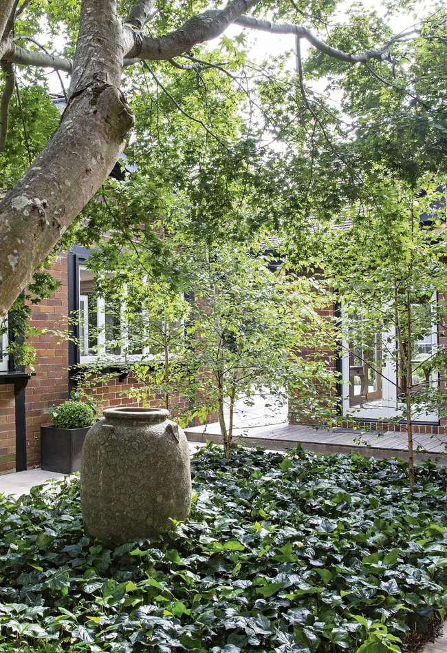 This engaging backyard fills the area north of their 1920s Tudor-style house. The previous layout didn’t suit a family of this size. “There was no flow between the house and the garden,” says Penelope.
