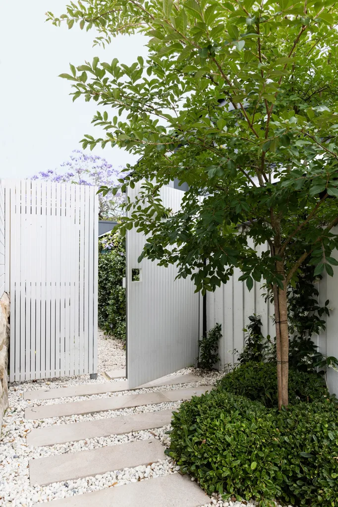 In 2020, the couple called in Luke Baldwin of Formed Gardens to rejuvenate the garden with a plan that would be a breath of fresh air while delivering it into the 21st century. “We wanted a practical, low-maintenance backyard with a pool, outdoor kitchen and entertaining area, plus enough space for the kids to kick a footy or play cricket,” says Bec.