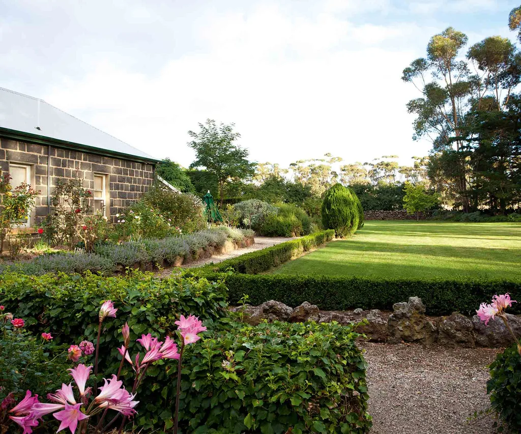 “Expert stonemason Greg Savage and his team constructed the walled vegetable garden and re-worked the entrance gateway,” Trish says. All the rocks were gathered from the surrounding paddocks.