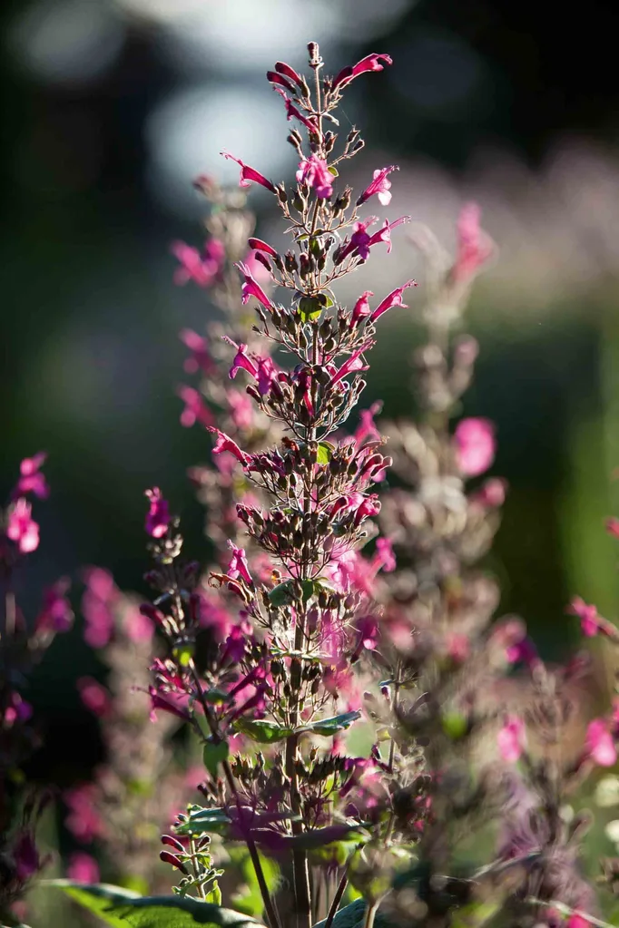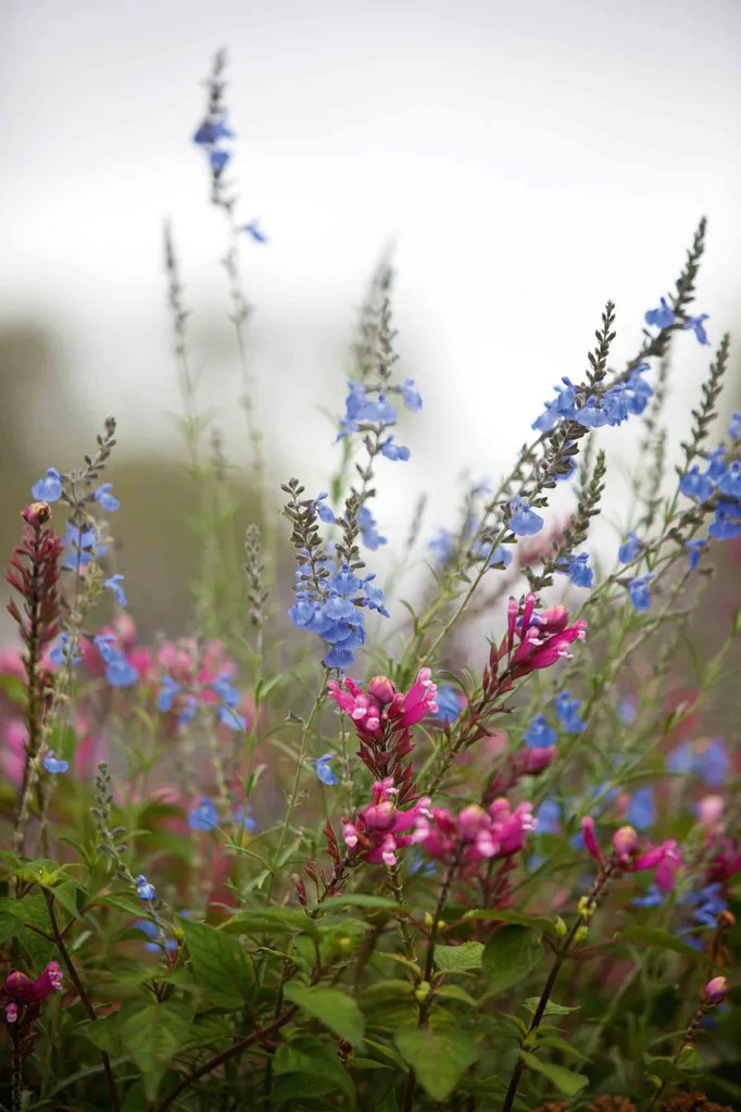 Blue sage (Salvia azurea) contrasts prettily with pink rose leaf sage.