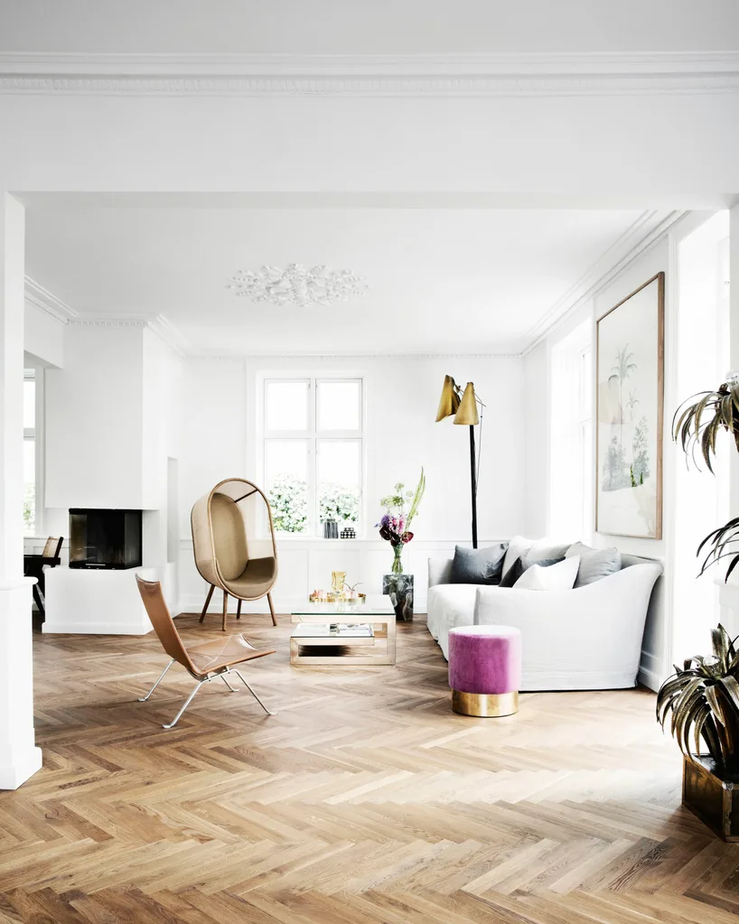 The 200 sq m villa was built in the 1870s, but previous owners had modernised it beyond recognition, stripping it of all its charms. Pernille and Philip quickly agreed that this needed to be rectified – even though it would leave them without a home not long after the birth of their son Billy Bjørn. “We started completely from scratch, with new floors, high ceilings, a new kitchen, two new bathrooms and a built-in fireplace,” Pernille says. They also tore down some walls and added custom-made cupboards and a new terrace at the rear of the house. “It was such a fun process!” she adds.