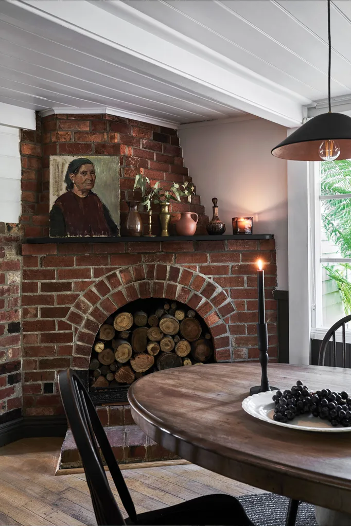 For the dining room, homeowners Sasha and Tim von Ess chose a vintage table from Family Founded and chairs from Found in Daylesford. A vintage portrait on the mantel completes the scene.