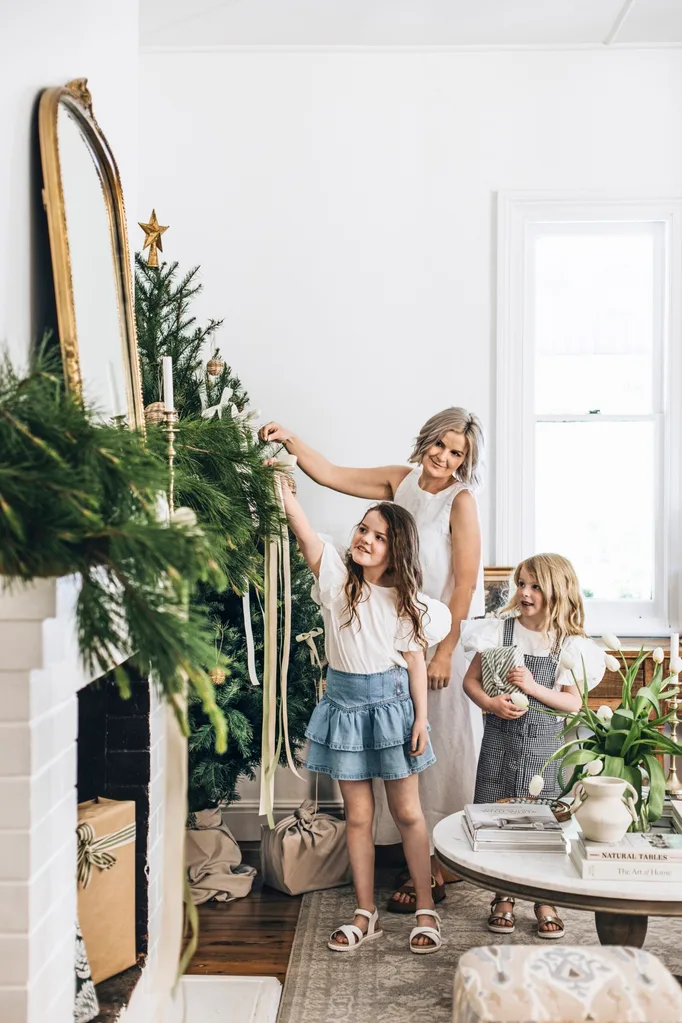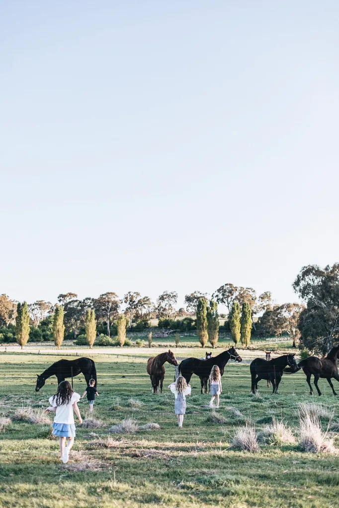 Ainsley and James host a Christmas Eve dinner with family, which allows Ainsley to go all out styling the table. But the day starts with a “quiet” morning with their five children before the festivities kick off: “It’s nice to start off with just us. The kids open gifts and we have a slow Christmas breakfast.” Giving their children a free-range lifestyle was the real drawcard for Ainsley and James when they bought the property. “The kids are constantly outside climbing a tree – it’s just so much space for them.”