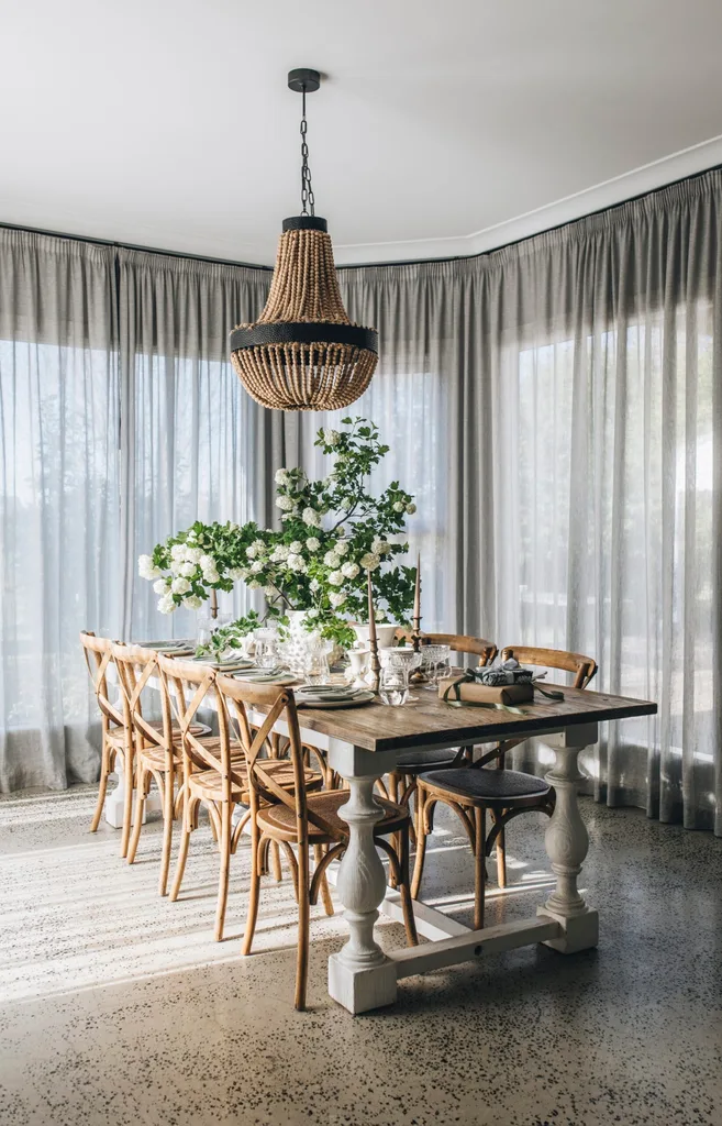 Calm, neutral colours and vintage furniture are a hallmark of her sophisticated style. Ainsley loves Australian brand Molmic’s handmade furniture, and the house is peppered with pieces she found in antique stores or on Facebook Marketplace and revamped, as well as family heirlooms, such as the bed and side table she inherited from her grandmother. “I shop local and I regularly go around to all the little antique shops in Millthorpe and the surrounding area,” she says. “You always find the most amazing pieces when you’re not looking for them.”