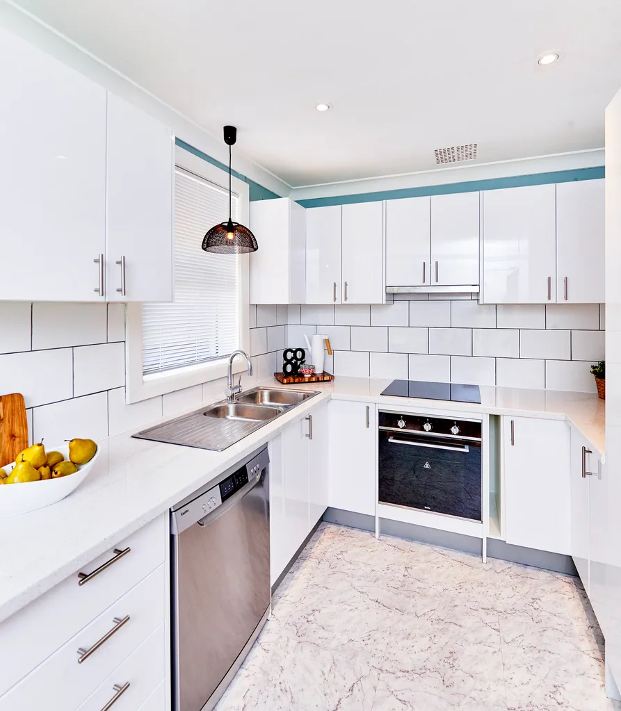With many modern vinyl designs available these days, Renovating For Profit’s Cherie Barber used marble-look vinyl tiles in place of the original lino floor to save on expensive timber or tile costs. Maybe vinyl isn’t that bad after all…