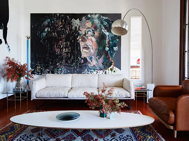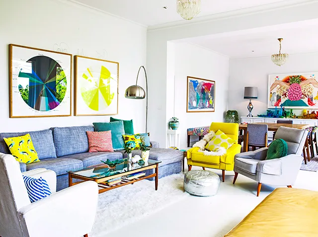 Work with what you’ve got. Utilise your living room’s space and look for interesting ways to present your artworks. If your wall-hanging space is lacking, find shelving or walls to lean frames against. Artworks with alternating heights look interesting and will immediately boost your living room’s culture-cred. Photography: Armelle Habib / bauersyndication.com.au