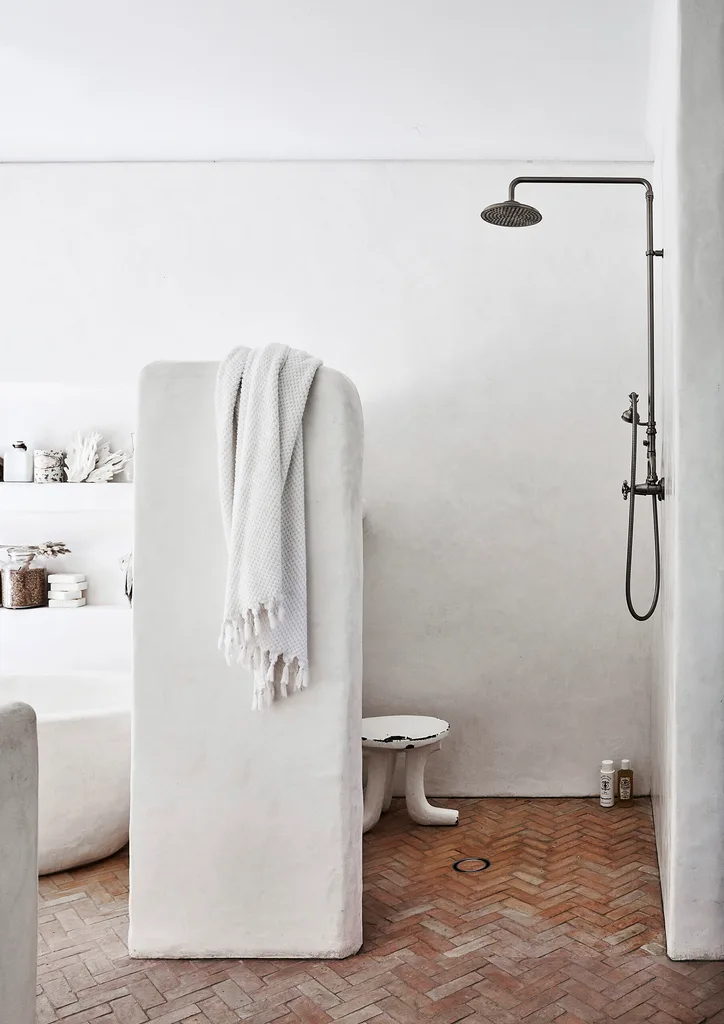 Bright, white and calming, this bathroom by stylist Romi Weinberg celebrates texture and the beauty of raw materials, and showcases the best of Mediterranean-inspired design.