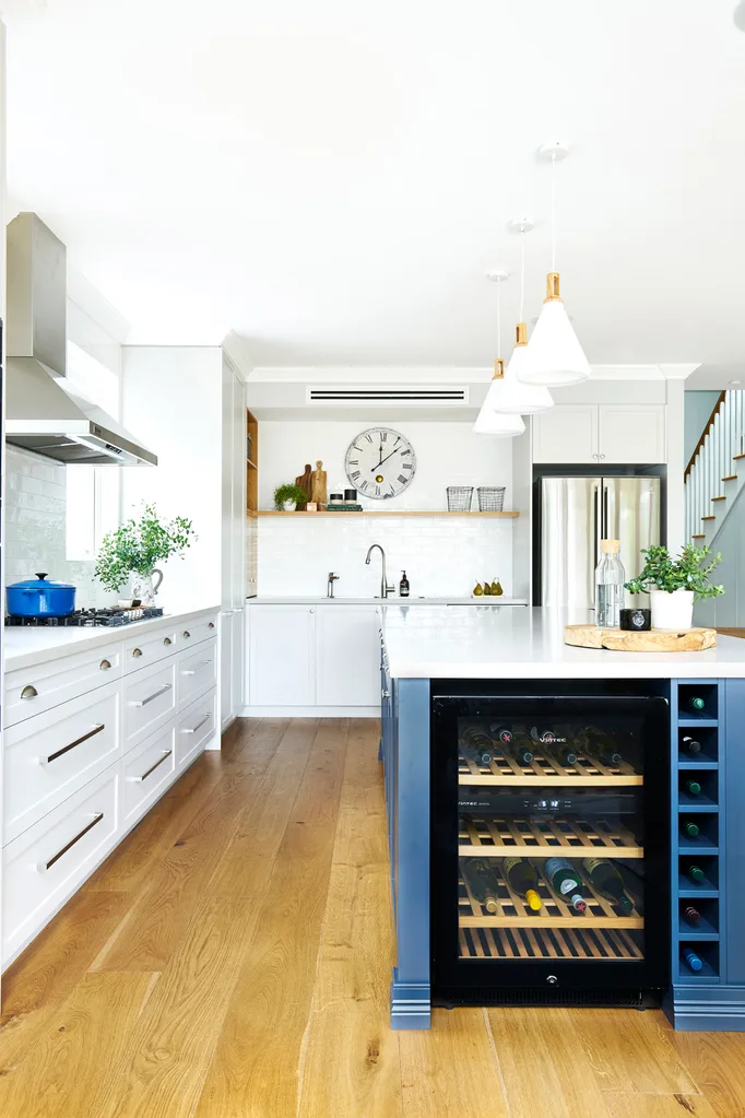 The fridge is the most visited fixture in the room so it’s located on the periphery and can be easily approached from either direction,” says Helen.