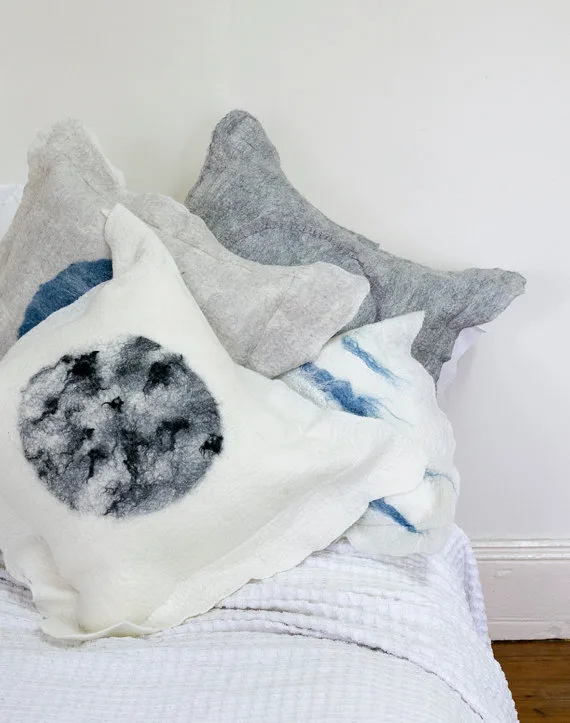 Mottled Spot felt cushion cover, from $109, by Grace Wood Designs