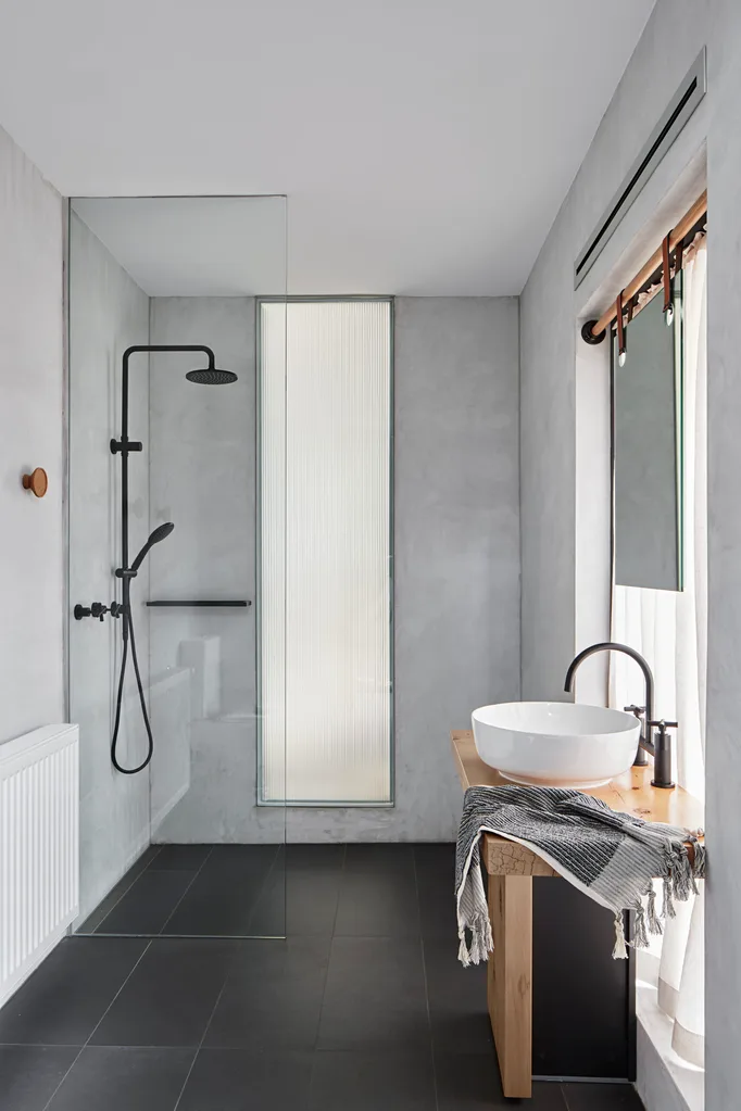 Inside, chic understatement and a calm ambience prevails. A material palette of concrete, timber, and stone creates a modest yet refined aesthetic. “We kept it deliberately simple using texture over colour,” explains design coordinator and project lead, Josie Somerville.