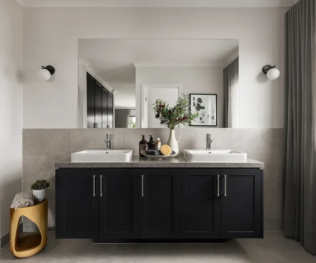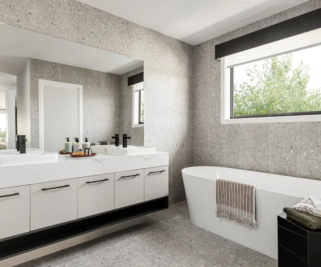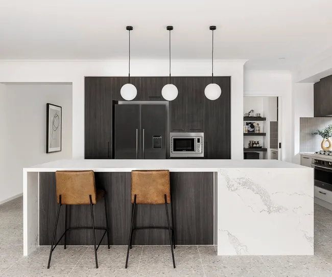 Crisp lines and a chic monochrome palette bring a breath of fresh air to this Balmoral design at Peppercorn Hill at Donnybrook. The open-plan kitchen includes a generous butler’s pantry and large island kitchen benchtop, making it the ultimate entertaining space. Natural light floods the kitchen through the elongated window, which acts as a beautiful splashback.